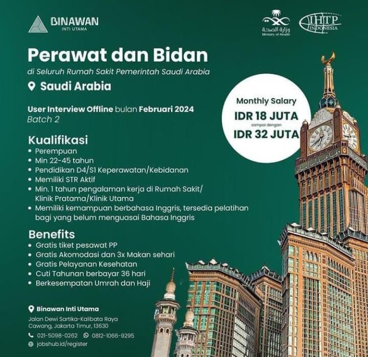 Lowongan Kerja Perawat dan Bidan di Seluruh Rumah Sakit Arab Saudi