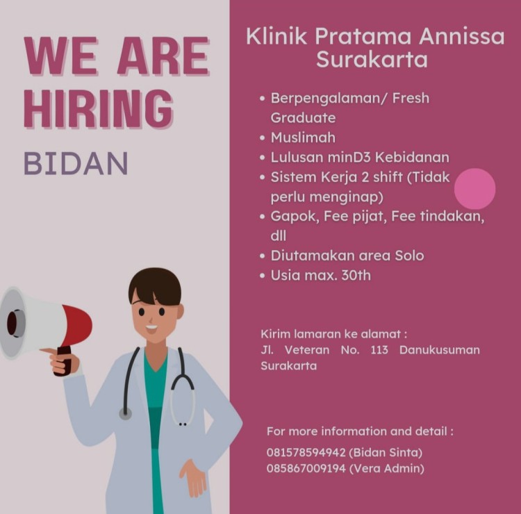 We Are Hiring Bidan di Klinik Pratama Annissa Surakarta