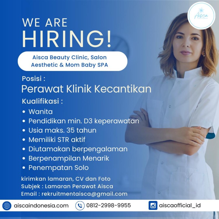 We Are Hiring Perawat Klinik Kecantikan di Aisca Beauty Clinic