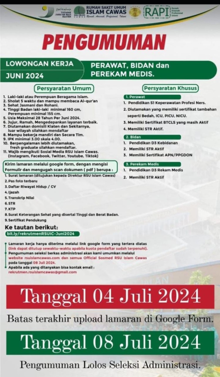 Open Recruitment Perawat di RS Muhammadiyah Siti Aminah Bumiayu