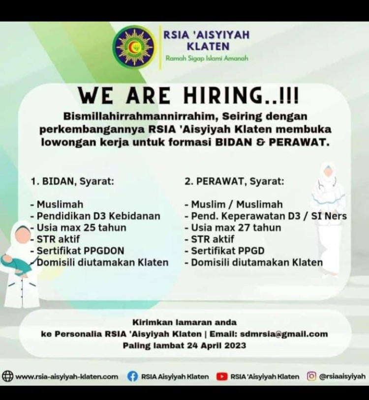 Lowongan kerja bidan dan perawat RSIA Aisyiyah Klaten