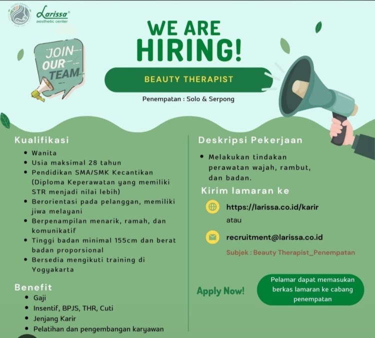 we are hiring beauty therapist-larissa