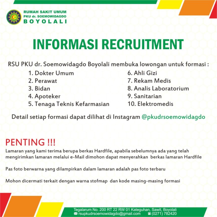 Lowongan pekerjaan rs pku dr soemowidagdo boyolali