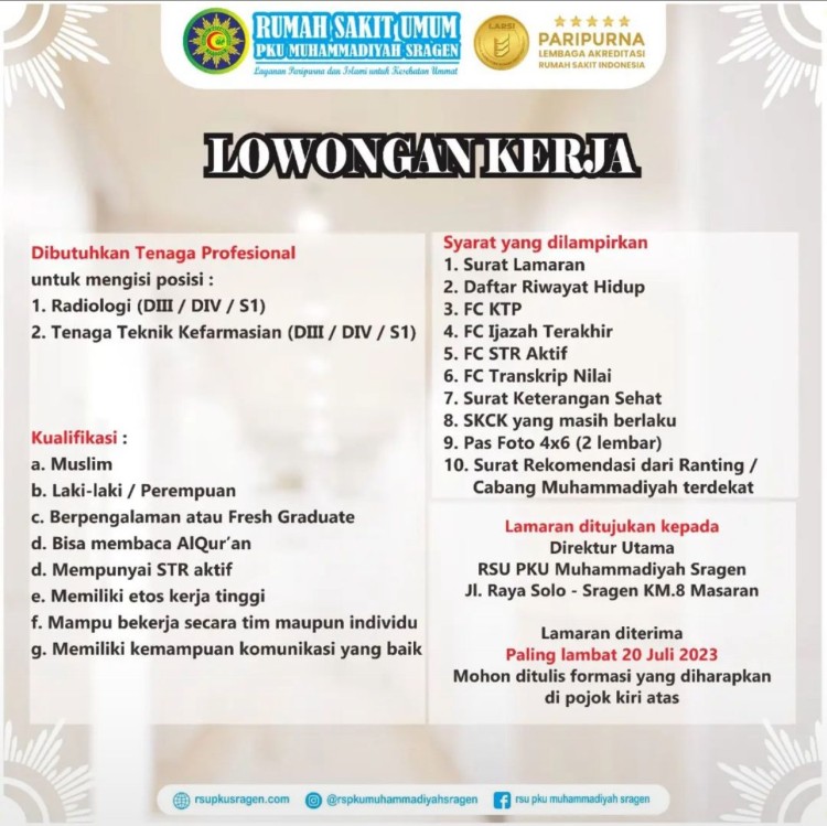 Lowongan pekerjaan rsu pku muhammadiyah sragen