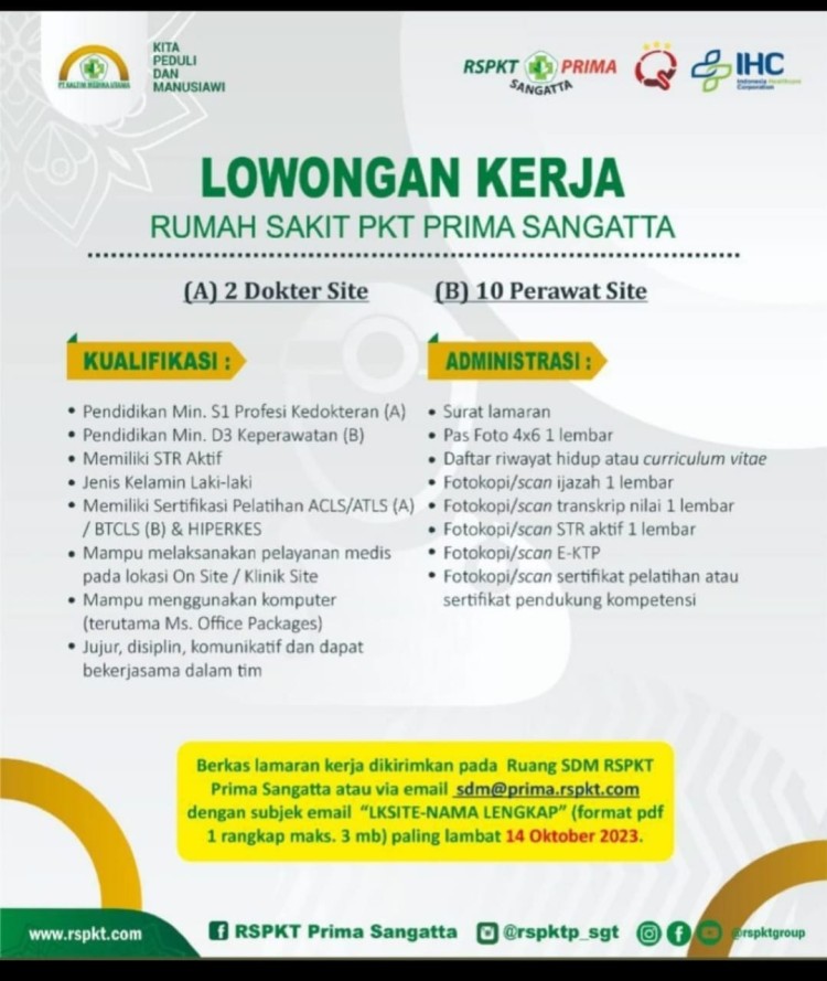 Lowongan Kerja Rumah Sakit PKT Prima Sangatta