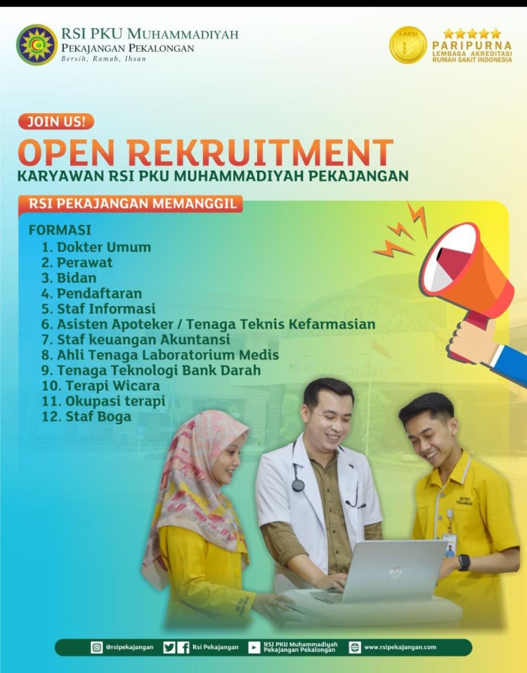Open Recruitment Karyawan RSI PKU Muhammadiyah Pekajangan