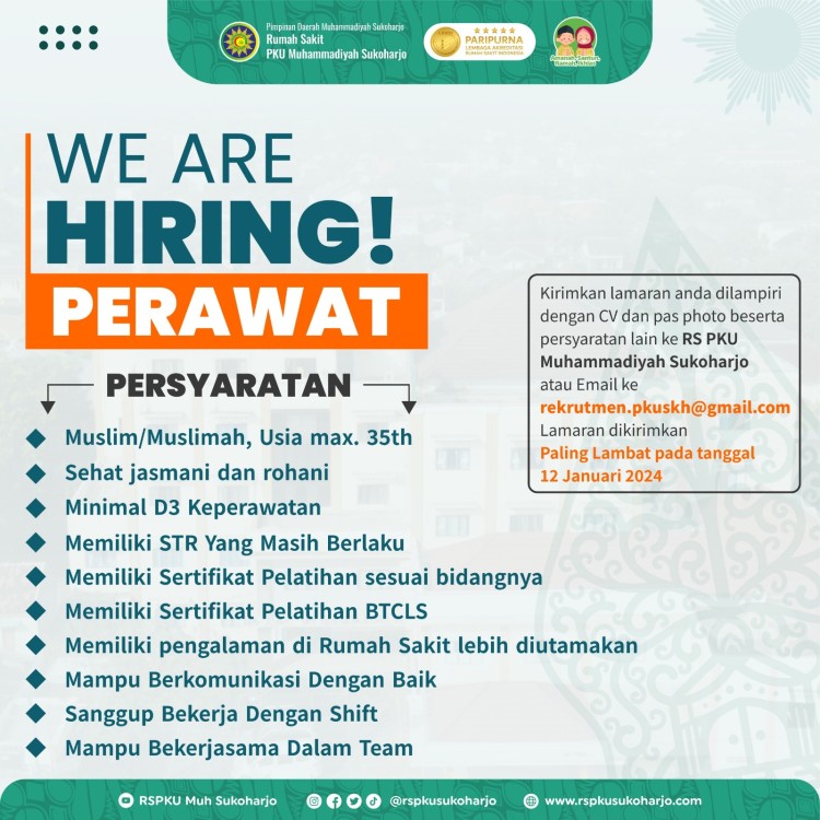 We are hiring Perawat RS PKU Muhammadiyah Sukoharjo
