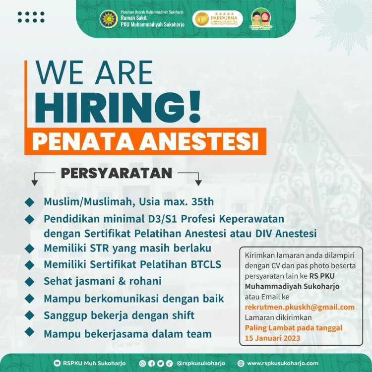 We are hiring Penata Anestesi RS PKU Muhammadiyah Sukoharjo