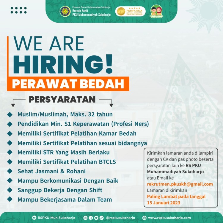 We are hiring Perawat Bedah RS PKU Muhammadiyah Sukoharjo